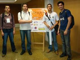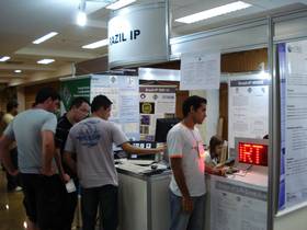 Neste ano, um dos stands contou com a presença do programa Brazil-IP, projeto este que é financiado pelo CNPq e no qual o GAMA participou com a demonstração de um protótipo de uma Unidade Aritmética em Ponto Flutuante - FPU - que está sendo desenvolvida pelos integrantes do grupo. A apresentação foi feita pelos acadêmicos de Engenharia Elétrica Raphael Neves e Iuri Figueiró.