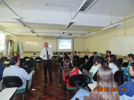 A Universidade Federal do Pampa (Unipampa), Campus Alegrete, recebeu o engenheiro agrônomo e professor da Universidade Federal de Campina Grande, José Geraldo de Vasconcelos Baracuhy, no dia 18 de maio. O profissional é integrante do Conselho Federal de Engenharia e Agronomia (Confea) e palestrou sobre a Comissão de Educação e Atribuição Profissional (Ceap) no âmbito do Confea e sobre a 72ª Semana Oficial da Engenharia e Agronomia (SOEA)/Congresso Técnico e Científico da Engenharia e da Agronomia (Contecc).