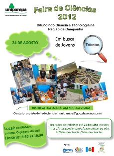 A Feira de Ciências é uma proposta do projeto Difundindo Ciência e Tecnologia na Região da Campanha, aprovado pelo Conselho Nacional de Desenvolvimento Científico e Tecnológico