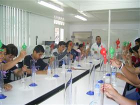 A aula prática foi ministrada pelo técnico da Unipampa Ícaro Morelle e teve a participação de 23 alunos do ensino médio do Colégio da Urcamp orientados pela professora Laís Frantz de Faria. Os tópicos abordados foram escalas volumétricas, vidrarias e separação de misturas.