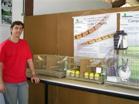 No estande da Unipampa estão sendo apresentadas as informações Institucionais através de slides e pôsteres. Estão expostos os animais da linha pet (canários, diamantes de gould, manon do Japão e canários, coelho e minhocas vermelhas da Califórnia) criados pelo professor Berilo Brum.