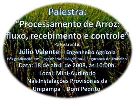 Palestra: "Processamento de Arroz: fluxo, recebimento e controle"