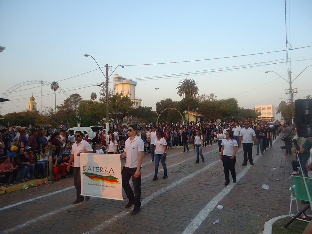 Comunidade pedritense pôde conferir nova participação da universidade na celebração do Dia da Independência. Representações de setores do campus, como o curso de Agronegócio (esq.) e a empresa júnior Da Terra, mostraram o desenvolvimento do campus