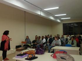 A coordenadora acadêmica do Campus Jaguarão, professora Carmem Nogueira, ministrou a aula inaugural do curso