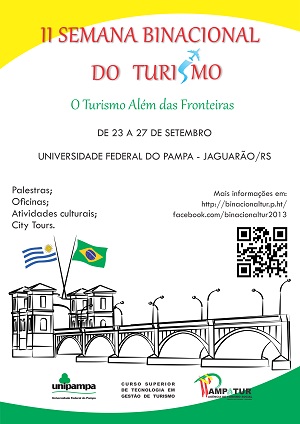Acontecerá entre os dias 23 e 27 de setembro, na Universidade Federal do Pampa (UNIPAMPA), Campus Jaguarão, a II Semana Binacional do Turismo – O Turismo Além das Fronteiras. O evento é organizado pelo curso de Tecnologia em Gestão de Turismo e a Agência de Turismo Social PAMPATUR.
