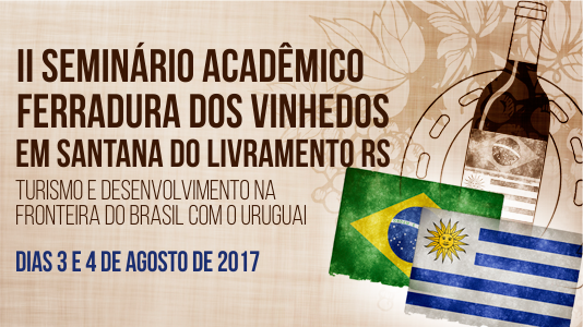 O Campus Santana do Livramento da Universidade Federal do Pampa (Unipampa) sediará, nos dias 3 e 4 de agosto, o II Seminário Acadêmico Ferradura dos Vinhedos: Turismo e Desenvolvimento na Fronteira do Brasil com o Uruguai. O evento, que teve sua primeira edição realizada em 2016, surgiu a partir de pesquisas desenvolvidas sobre o Roteiro Turístico Ferradura dos Vinhedos, um projeto idealizado pelo professor Avelar Fortunato, que abrange o trajeto entre as empresas integrantes do Arranjo Produtivo Vitivinícola de Santana do Livramento.