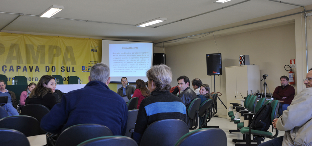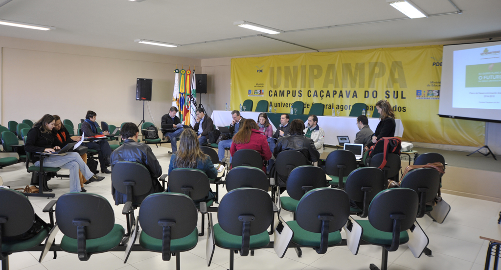 Em continuidade ao cronograma de reuniões presenciais para debater e construir o Plano de Desenvolvimento Institucional (PDI) para o período 2014-2018, a reitoria e a equipe responsável pela condução do trabalho retomou o contato com a comunidade universitária no auditório do Caçapava do Sul, nesta segunda-feira, 19 de agosto.