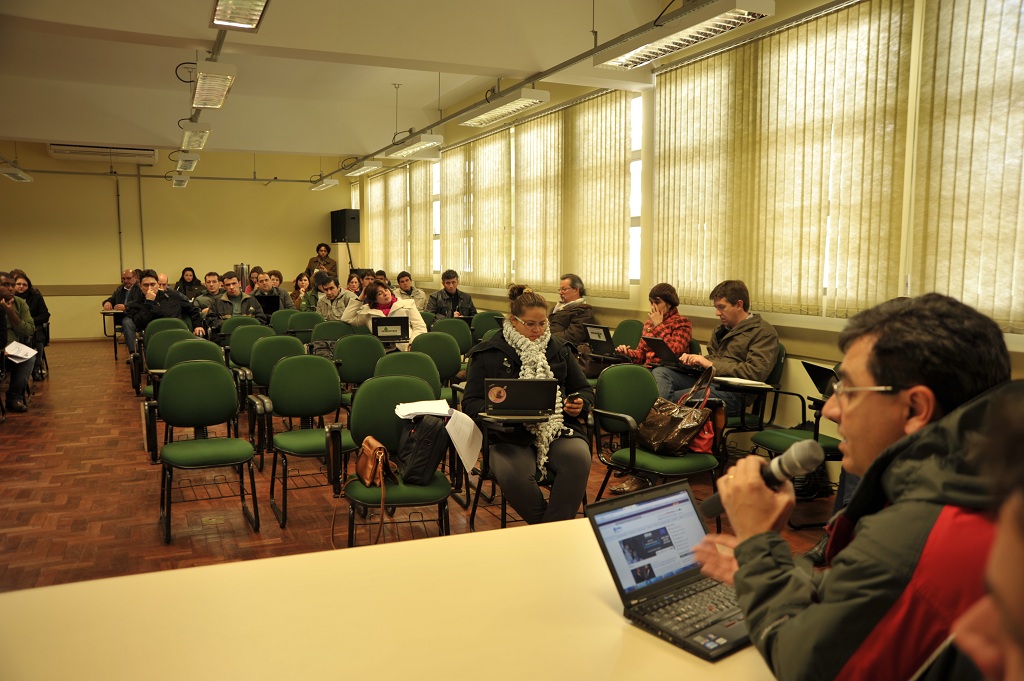 Após a apresentação do histórico da construção do documento e da metodologia que preside a discussão e redação de um PDI, os participantes passaram a discutir os eixos temáticos. A equipe responsável pelo PDI explicou o processo e reforçou as informações sobre a continuidade da participação pelo ambiente Moodle e a publicação das anotações realizadas em cada reunião nos campi no site do PDI.