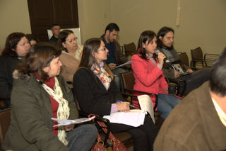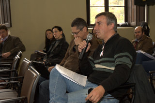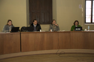 As reuniões presenciais para a construção do Plano de Desenvolvimento Institucional (PDI) 2014-2018 chegaram a Bagé, e nesta segunda-feira, 23 de setembro, servidores técnicos e docentes da Reitoria tiveram a oportunidade de debater os eixos temáticos que compõe o plano que norteará as ações, metas e objetivos da Instituição pelos próximos cinco anos, bem como contribuir para a reflexão de políticas a serem adotadas e a redação do documento. Estiveram reunidos com os servidores da Reitoria na sala Camilo Moreira da Prefeitura de Bagé a reitora, professora Ulrika Arns, o vice-reitor, professor Almir Barros da Silva Santos Neto, e os pró-reitores de Administração (PROAD), Éverton Bonow; Assuntos Estudantis e Comunitários (PRAEC), Simone Barros de Oliveira; Extensão e Cultura (PROEXT), Vera Medeiros; Gestão de Pessoal (PROGESP), Claudia Denise da Silveira Tôndolo; Graduação (PROGRAD), Elena Maria Billig Mello; Pós-Graduação (PROPG), Ricardo Gunski, e Planejamento, Desenvolvimento e Avaliação (PROPLAN), Vanessa Rabelo Dutra.