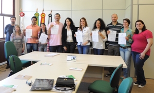 Um momento histórico para a UNIPAMPA. Esta foi a avaliação da pró-reitora adjunta de Graduação, Francéli Brizolla, sobre a posse de sete professores de Língua Brasileira de Sinais (LIBRAS) realizada pela Universidade Federal do Pampa (UNIPAMPA) na tarde desta terça-feira, 5 de novembro. Ana Paula Gomes Lara, Cristiano Pereira Vaz, Erika Vanessa de Lima Silva, Keli Krause, Marcelo Sander, Valéria Gonçalves Scangarelli Matte e William Dias Silveira passam agora a fazer parte do corpo docente da Instituição e ministrarão a disciplina de LIBRAS nos diferentes campi, bem como atuar em projetos de ensino, pesquisa e extensão. ![]() A pró-reitora adjunta fez o acolhimento em nome da reitora Ulrika Arns e destacou que o provimento de vagas para professores de LIBRAS, bem como as de intérprete da língua, é uma conquista para a UNIPAMPA. Segundo ela, a meta agora é preencher as demais vagas tanto para professor quanto para intérprete de LIBRAS, com aprovados para todos os campi no próximo concurso a ser lançado. “Queremos consolidar a presença da LIBRAS em toda a Instituição e não iremos descansar enquanto não alcançarmos todas as metas. [...] Não é uma questão só de cumprir a lei, mas sim firmar a cultura surda na Universidade”, afirmou Francéli. ![]() A professora Emiliana Rosa, da disciplina de LIBRAS no Campus Bagé e membro do Núcleo de Inclusão e Acessibilidade (NInA) , também participou da acolhida aos novos docentes e destacou a necessidade de perseverança na caminhada que se inicia. A docente atua desde 2009 na Instituição e convidou os novos colegas a trabalhar juntos para o crescimento da UNIPAMPA. ![]() Com a tradução dos intérpretes Felipe dos Santos e Eliege Moreira, a pró-reitora adjunta apresentou a estrutura de apoio com a qual os novos docentes irão contar, com três intérpretes de LIBRAS nos campi Bagé e Santana do Livramento e na PROGRAD, e salientou que, tão logo entrem em exercício, os professores participarão de uma reunião para que projetos que queiram implementar e outras atividades possam ser discutidas em conjunto, focando a UNIPAMPA como um todo. “A PROGRAD quer apoiar as ideias de vocês para que possam se tornar realidade”, comentou Francéli. LIBRAS é disciplina obrigatória nos cursos de licenciatura e optativa em outros cursos da UNIPAMPA. A chegada de novos sete docentes deverá qualificar ainda mais a oferta na área. ![]() |