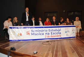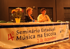 Educadores de todo o Estado e convidados de todo o País estão reunidos nesta segunda-feira, 2, em Bagé, para debater a educação musical na rede básica durante o IV Seminário Estadual Música na Escola. Promovido pelo curso de Música do Campus Bagé da UNIPAMPA e pelo Grupo Técnico Música na Escola, a Associação Brasileira de Educação Musical (ABEM), e a Comissão de Educação, Cultura, Desporto, Ciência e Tecnologia da Assembleia Legislativa do Rio Grande do Sul (CECDCT), o seminário no Complexo Cultural Dom Diogo trouxe para a região do Pampa a discussão a respeito da importância e os caminhos a ser tomados para a efetiva implantação da Lei Federal 11.769 de 2008, que torna obrigatória a música como conteúdo dos currículos da educação infantil, do ensino fundamental e do ensino médio. ![]() A parte da manhã foi reservada para a abertura do evento, que foi prestigiada por autoridades acadêmicas, como o vice-reitor Almir Barros da Silva Santos Neto e o diretor do Campus, Fernando Junges, dos governos estadual e municipal ligadas à educação e à cultura, bem como os organizadores da ação, e seguiu com a palestra “Música na escola: políticas públicas e ações do CNE”, com a conselheira do Conselho Nacional de Educação Malvina Tuttman, e a Mesa redonda “Música na Escola: relato de experiências”.  Convidada por seu papel na criação do curso de Música durante sua gestão, a ex-reitora Maria Beatriz Luce destacou em sua fala durante a cerimônia de abertura que a universalização das áreas do conhecimento na Universidade só foi completa a partir da instituição da graduação na área das Artes. Para a professora da UFRGS, é um desafio na nova era na educação dos brasileiros “reinstitucionalizar o direito à educação musical”. No mesmo sentido, a coordenadora do GT Música na Escola e representante da ABEM, Jusamara Souza (UFRGS), comentou o papel do GT na busca da concretização deste desafio, em “um coletivo que busca transformar políticas públicas em ações públicas”. Ao destacar a atuação da coordenadora do curso de Licenciatura em Música, Adriana Bozzeto, na organização local do evento, Jusamara avaliou que “a parceria e a vontade mostram que o curso de Música está inserido nesta luta e no cenário nacional”.   Da esquerda para a direita, as professoras Maria Beatriz Luce, Malvina Tuttman e Jusamara Souza O debate seguiu com as atividades previstas na programação, como a palestra da conselheira e ex-reitora da Unirio, Malvina Tuttman, que destacou a necessidade da democratização da educação musical em todo o país, pensando especialmente no ensino público e no interior do Brasil. A professora chamou atenção para a forma como os testes são aplicados priorizando algumas habilidades e a necessidade de novos indicadores de ensino que destaquem tanto a diversidade de aprendizagens quanto o ensino das artes. Para a educadora, o ensino da música deve se dar de forma transversal no projeto político-pedagógico das escolas, e relatou que um parecer neste sentido será analisado pelo CNE na próxima quarta-feira. “As crianças precisam ter garantido o direito a esta importante forma de construção do conhecimento”, salientou Malvina. A programação do IV Seminário Estadual Música na Escola segue com apresentações musicais, e mesas redondas sobre “As leis 10.639/03 e 11.645/08: reflexões e impactos na escola” e Mais Educação, Mais Cultura, Mais Música na Escola?”. Leia mais Aline Reinhardt para Assessoria de Comunicação Social |