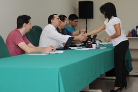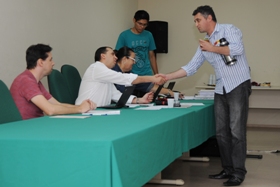 Tomaram posse no Conselho Universitário (CONSUNI) na manhã desta quinta-feira, 27, os novos conselheiros eleitos no final de 2013 para compor o órgão máximo de deliberação da Universidade Federal do Pampa (UNIPAMPA), durante a 51ª Reunião Ordinária realizada no Campus Jaguarão. São eles representantes docentes, discentes, técnicos e comunidade externa. Os mandatos dos representantes docentes e técnicos seguem ao longo de 2014 e 2015, enquanto os mandatos dos discentes ocorrem ao longo de 2014. Manhã de trabalho iniciou com a posse dos representantes docentes e técnicos O Conselho Universitário é composto por 15 representantes docentes, cinco discentes, cinco técnico-administrativos titulares e dois representantes da comunidade externa, além de representantes das comissões superiores, conselheiros da reitoria, conselheiros diretores das Unidades, vice-presidente e presidente (vice-reitor e reitora, respectivamente).
