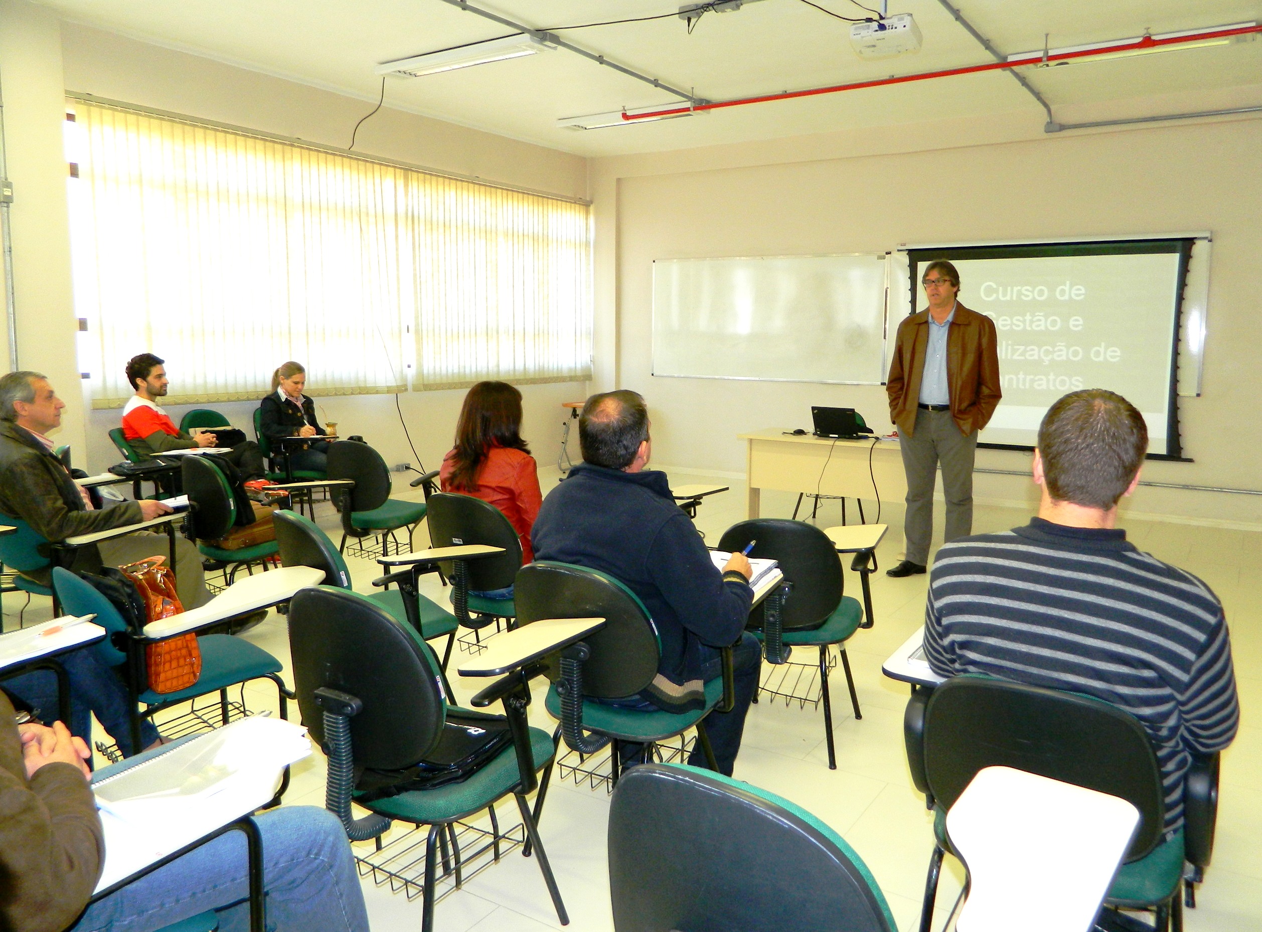 O curso de Gestão e Fiscalização de Contratos iniciou as aulas no Campus Bagé nesta segunda-feira, 19, com 27 alunos inscritos. O período das aulas vai até o dia 22 de maio e tem carga horária de 30h, distribuídas nos turnos manhã e tarde. As aulas serão ministradas pelo servidor da Advocacia Geral da União (AGU) e chefe da Divisão de Licitações, Compras e Contratos, Rodrigo do Canto Cardoso, nas salas 2104 (nos dias 19 e 20 de maio) e 2106 (nos dias 21 e 22 de maio).