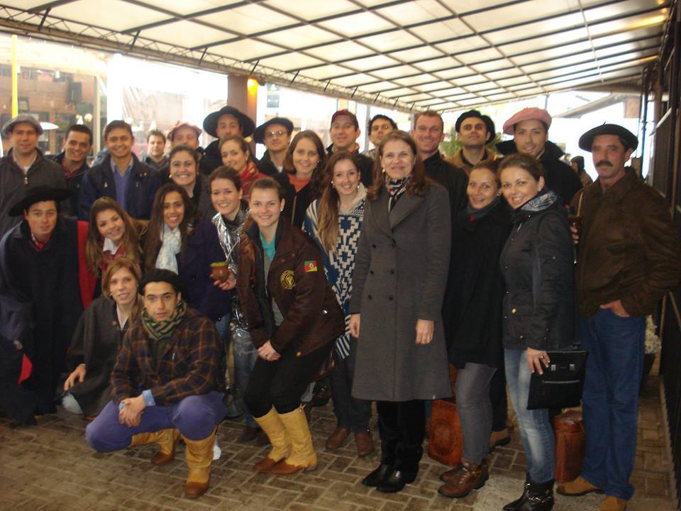 Professores e alunos de Medicina Veterinária visitaram a Expointer (na foto, a turma em encontro com a reitora Ulrika Arns)